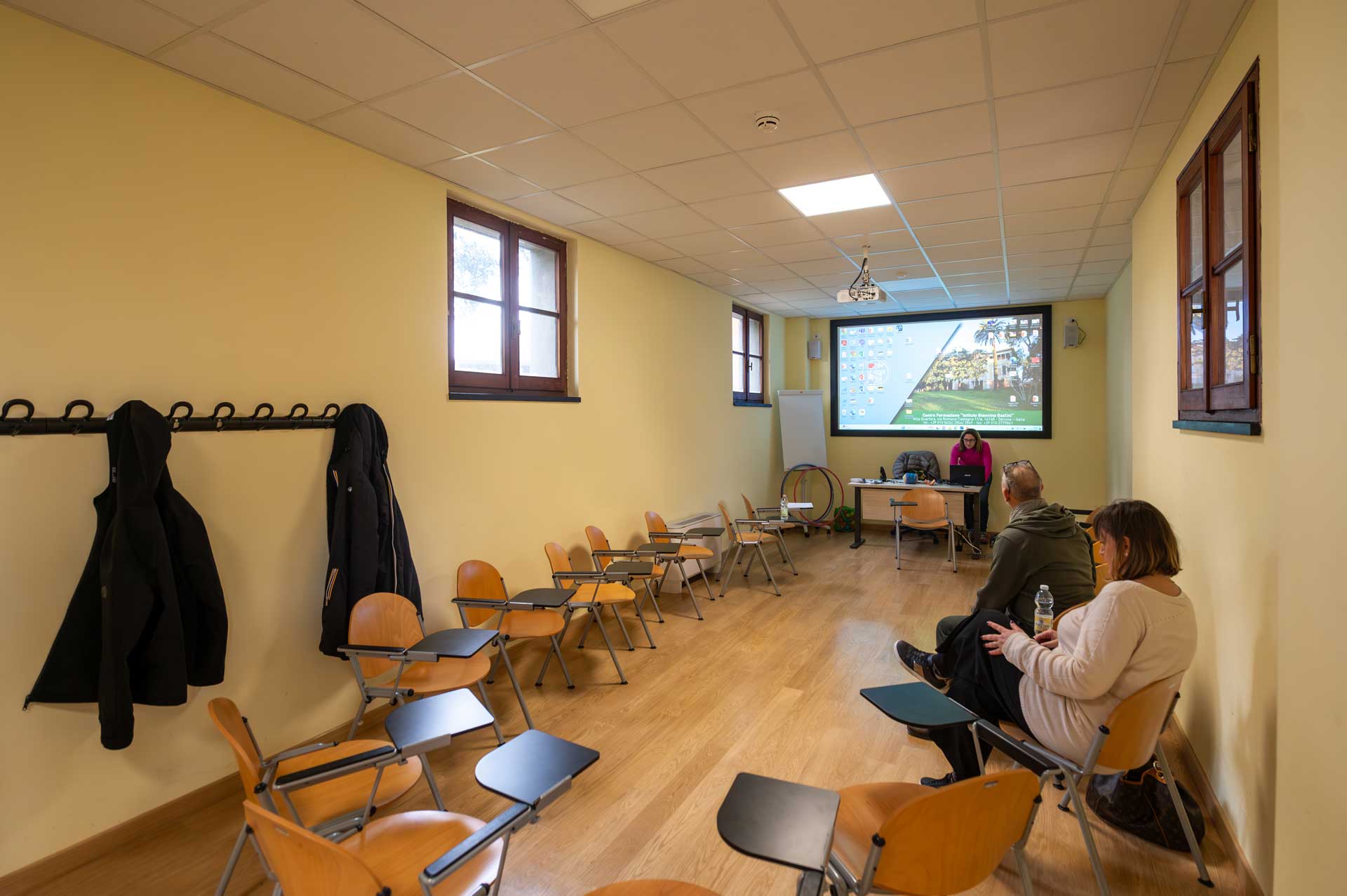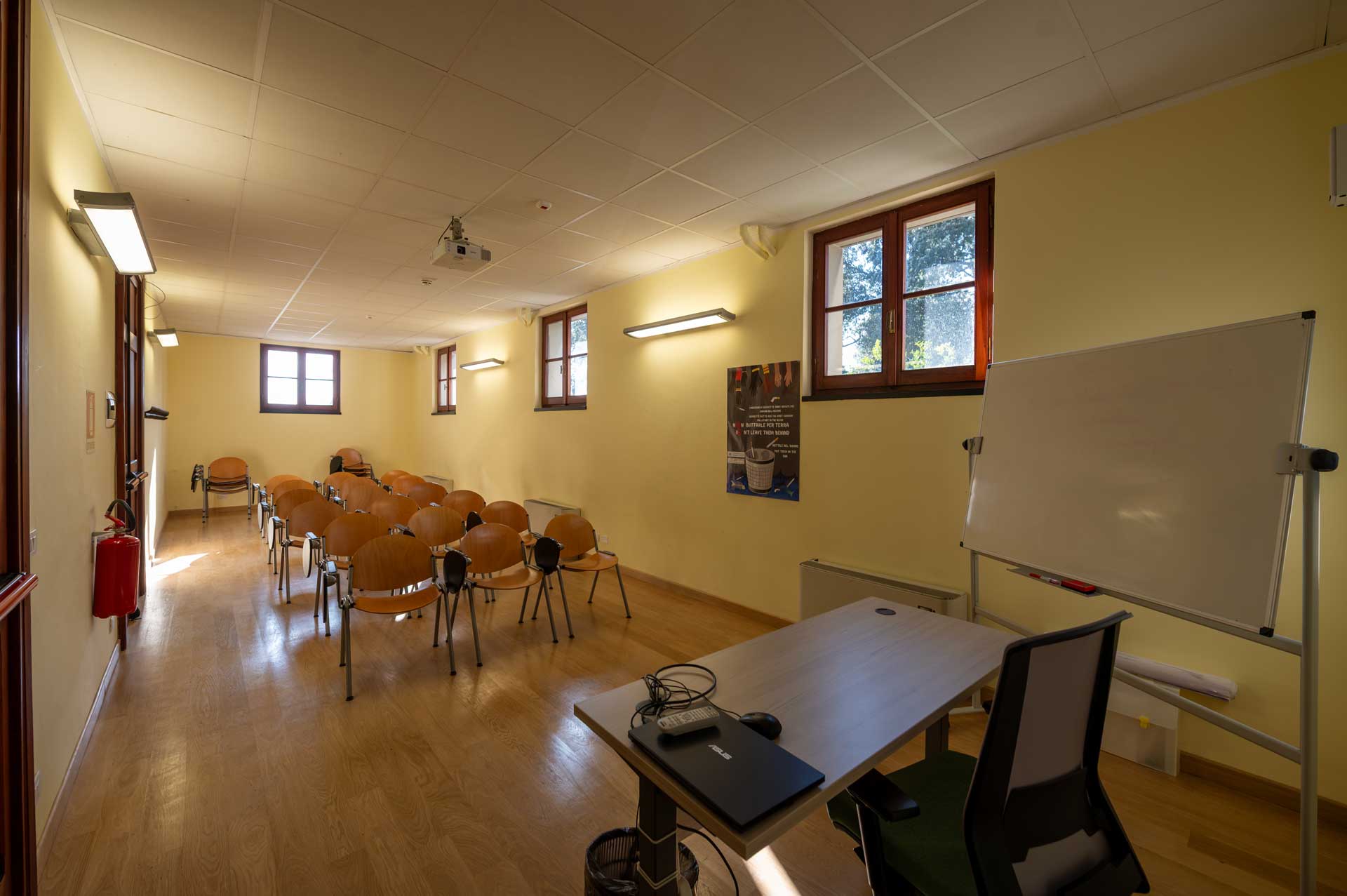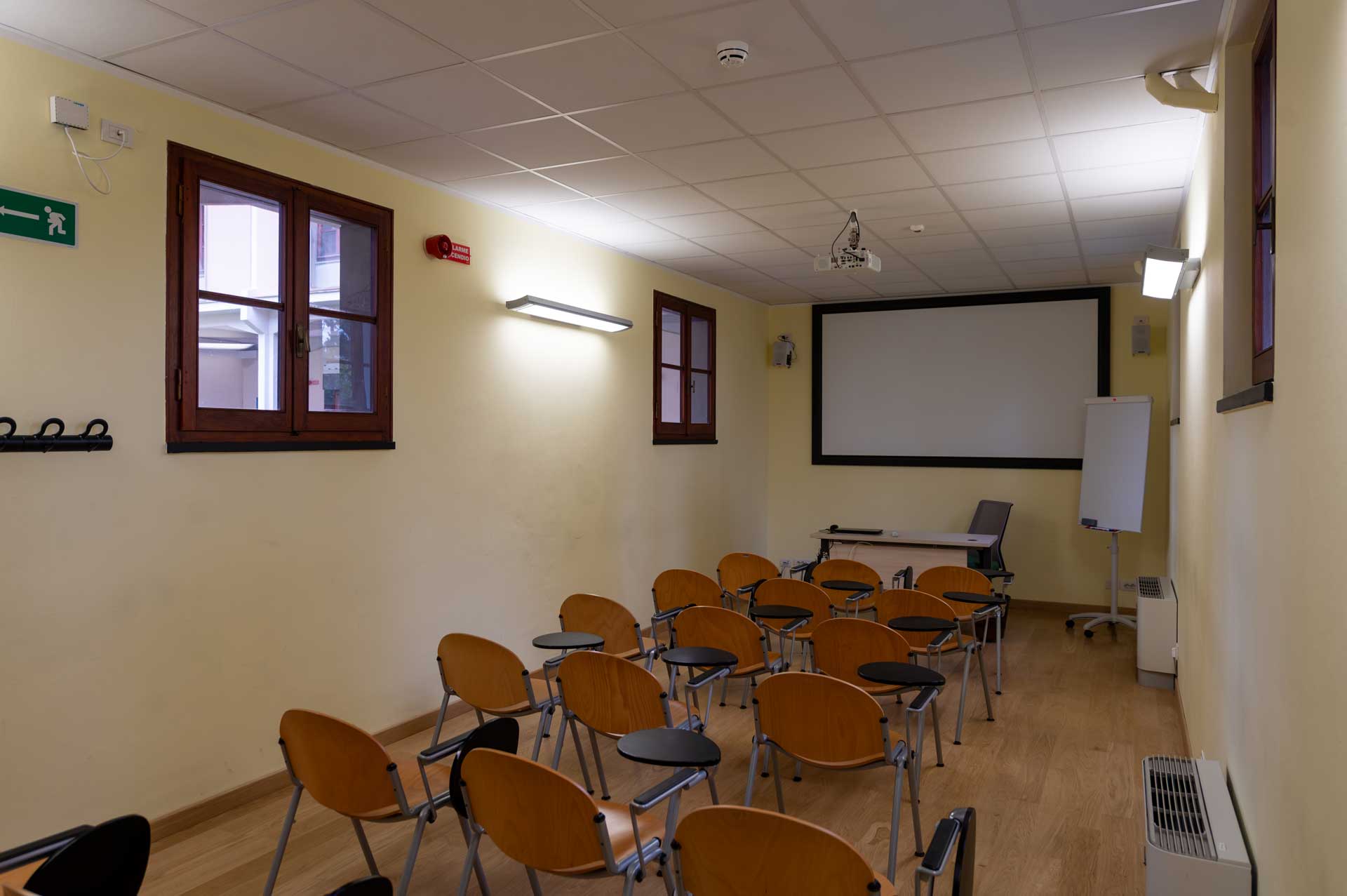 3 Aule gemelle dalle dimensioni contenute ideale per lezioni frontali. Tutte le aule hanno l’accesso dal chiostro.
